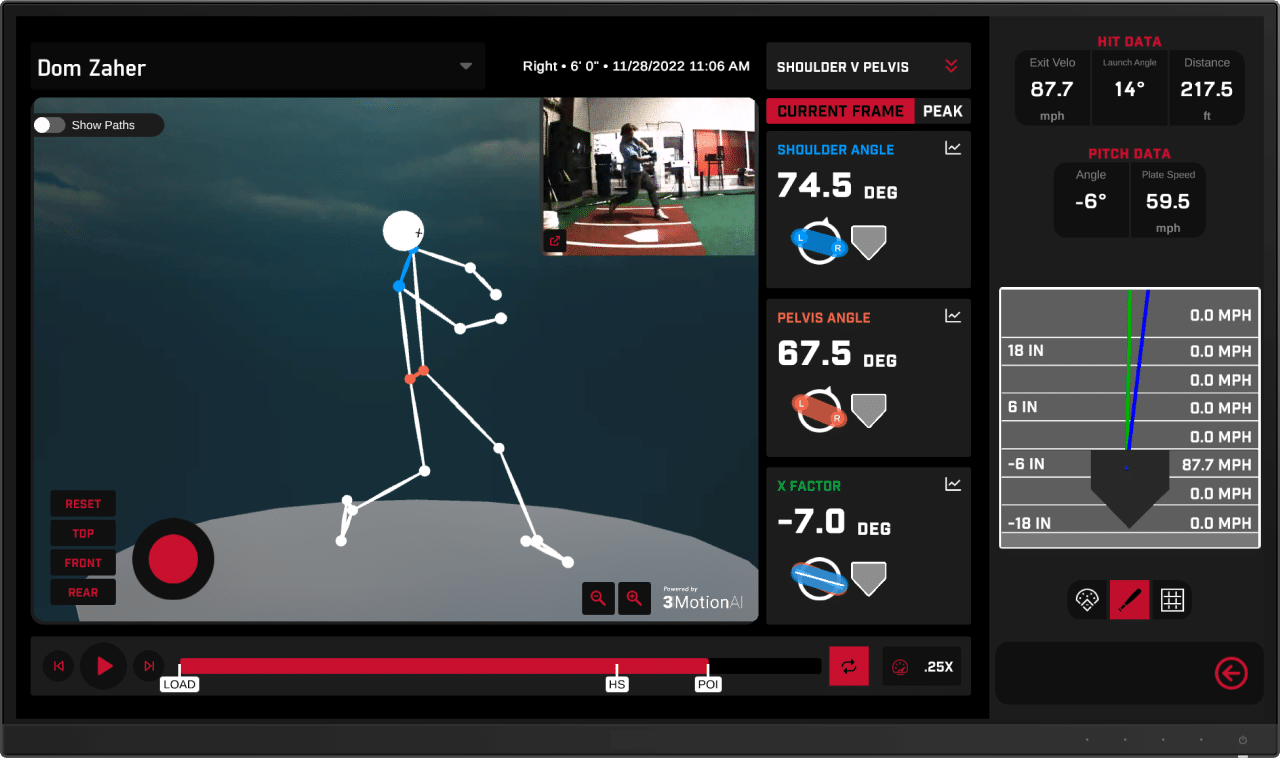 HitTrax Biomechanics pairs high-speed video with batted ball data to break down how the swing moves through key checkpoints. What can you list as biomechanics focus areas
