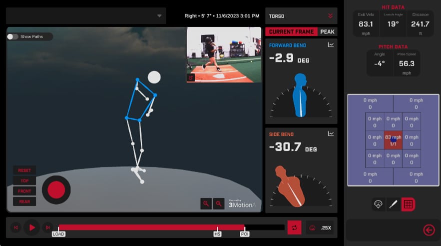 HitTrax gives real-time stats and hitting metrics, plus video analysis and trend reports you can look back on.